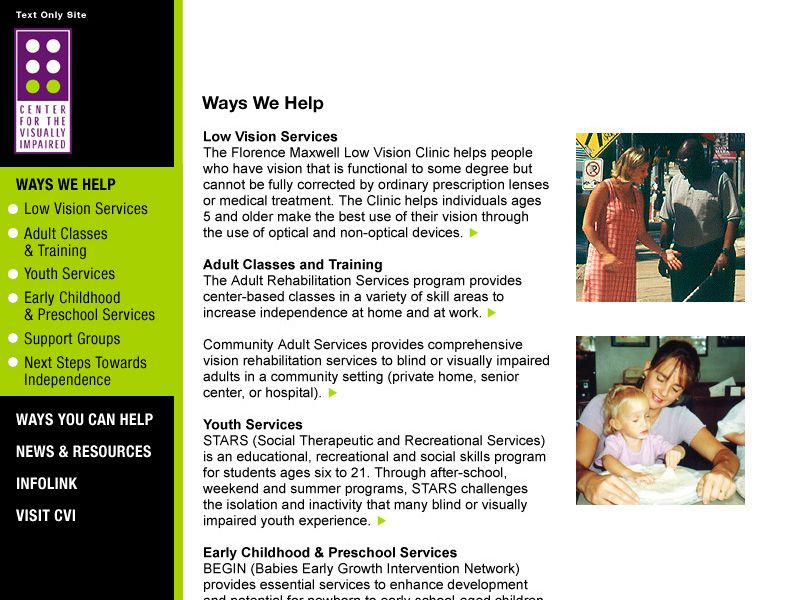 Even though the Center for Visually Impaired is positioned as a leading resource for those who are blind, suffering from diminished sight, and color blindness, the Center's previous website did not meet ADA, Section 508, or W3C compliance for accessibility.