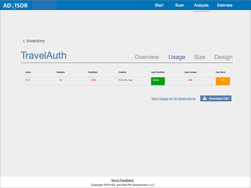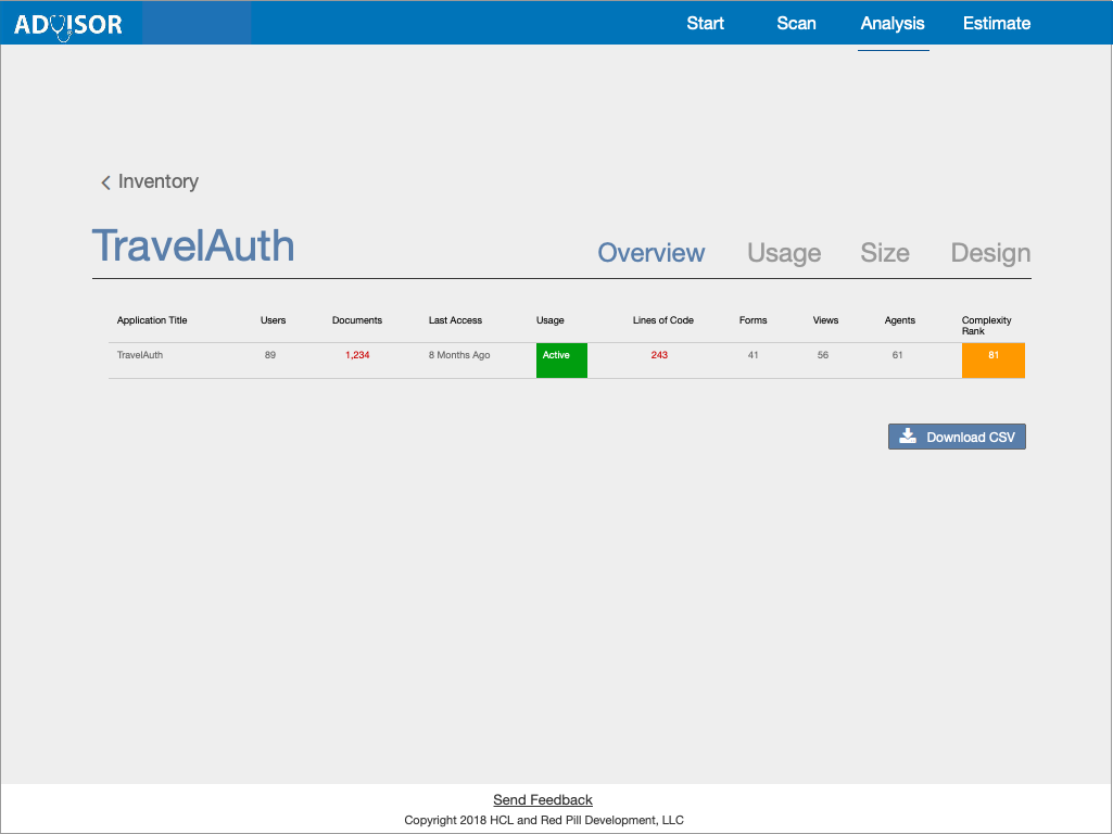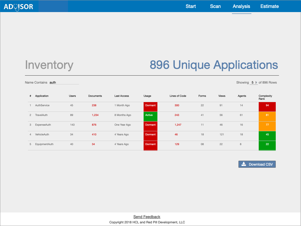 My company, Red Pill Now, worked with tech giant, HCL to develop a service designed to provide customers with a comprehensive inventory, and objective analysis of the Domino applications contained on one or more servers. Advisor then seeks to assess the value of each application based on business rules and key metrics provided by the customer. This data is used to suggest if the application should be retired, maintained, or modernized as part of a broader, strategic application management program.